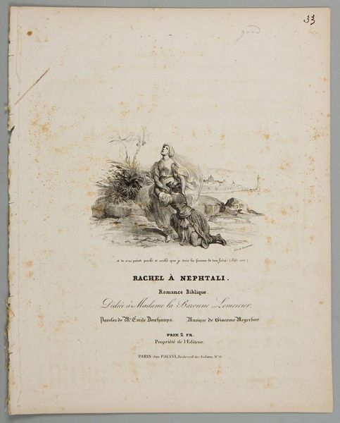 Editor: This sheet music cover, "Steal, gentle breeze, to my little boat" by an anonymous artist, shows a figure sailing a small boat. I'm struck by how serene and idyllic the scene seems. What do you see in this piece? Curator: The boat itself becomes a vessel of cultural memory. The lone figure, juxtaposed with the peaceful setting, invokes themes of solitude and the journey of life. Notice how the artist uses light and shadow. What emotions do those evoke for you? Editor: I feel a sense of longing, maybe even nostalgia. Curator: Exactly! The image becomes a symbol for our own personal journeys, and the enduring human desire for peace and connection. Editor: That’s a powerful way to look at a piece of sheet music. Thank you. Curator: My pleasure, looking closely reveals the hidden depths of an image.