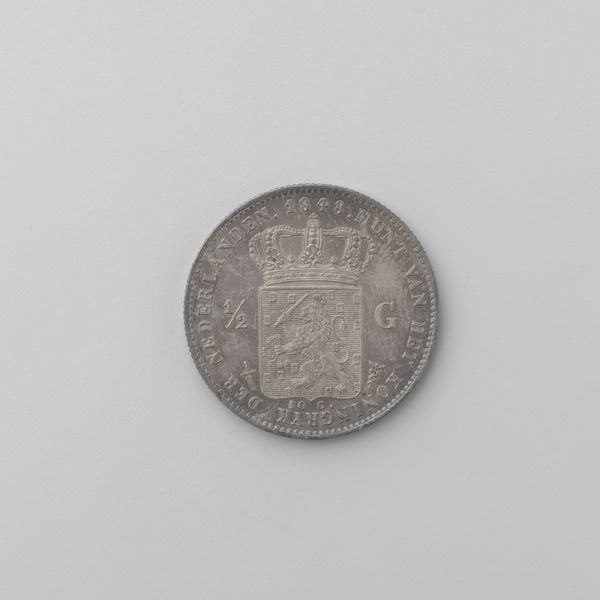 The Utrechtse gulden was produced in 1748 by the Province of Utrecht with silver. Its circular shape and intricate heraldic design create an immediate sense of established order and authority. The coin's design elements are organized around a central shield, topped by a crown. The lion rampant within the shield is a clear symbol of power and dominion. The surrounding text, executed in a careful circular pattern, reinforces this message of control and governance. The material, silver, lends the coin not only monetary value, but also communicates the wealth and stability of the province it represents. Consider how this coin embodies the principles of semiotics, where symbols and material coalesce to convey meaning far beyond their immediate form. It invites us to reflect on the structures of power and representation that define our social and political landscapes, encouraging us to question the values and hierarchies embedded in these systems.
