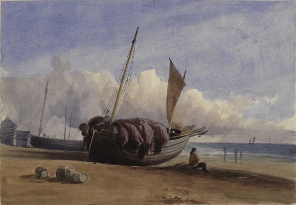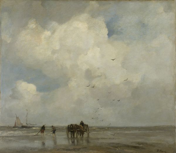 Andreas Achenbach painted "Fisherman's Cottage in The Dunes" during a time when romanticism was turning to realism in art. Achenbach, a landscape painter, captured a scene that reflects both the beauty and the hardship of life for coastal communities. This painting invites us to consider the lives of the fishermen and their families, who are depicted not as grand figures, but as ordinary people in a humble setting. The cottage, nestled in the dunes, suggests a life lived in close proximity to nature and its elements. The presence of women and children near the cottage hints at the gendered division of labor, where women often maintained the home while the men were at sea. Achenbach was known for his dramatic and emotional depictions of nature. In this work, he captures a quiet moment of everyday life, yet hints at the underlying challenges faced by these communities, whose lives were deeply intertwined with the unpredictable sea.