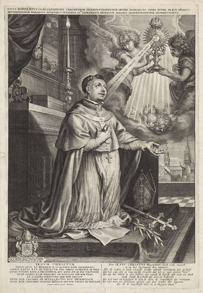 This engraving by Pieter Feddes van Harlingen depicts John the Evangelist accompanied by an eagle. This is no mere bird, but a symbol, an attribute inextricably linked to John, representing the soaring, spiritual nature of his Gospel. Note how the eagle clutches an inkwell, a tool of revelation, echoing the act of writing John performs below. This pairing of Evangelist and eagle is not unique; we see it echoed across centuries, from illuminated manuscripts to monumental sculptures. But why an eagle? In ancient lore, the eagle was believed to be the only creature capable of looking directly into the sun. Herein lies the key: the eagle mirrors John's profound insight into divine mysteries. This symbol, though, is not static. It evolves. The eagle can represent pride, imperial power, or, in this case, spiritual vision. The emotional power of the image lies in its ability to connect us with something primal, a collective memory of transcendence. Like an echo through time, this symbolic language resonates, transcending its immediate context.