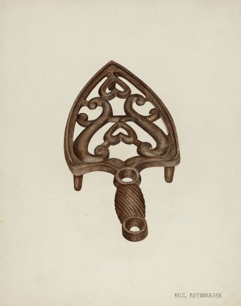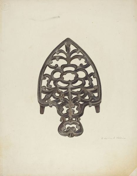 Sydney Roberts made this ‘Trivet’ drawing, but we don’t know exactly when or with what, though it looks like pencil and watercolor. The lines create a beautiful, symmetrical arabesque, as if she found the design already in the world, and was simply tracing it. The color palette is muted, almost monochromatic, but there’s a slight variation of tone that gives the metal form a weighty, sculptural presence. Look at the way Roberts renders the edges of the trivet. Are they rounded or sharp? The sensitivity of these marks creates the illusion of three-dimensionality. It reminds me of the drawings of overlooked objects that Jasper Johns did. Both artists elevate a mundane, functional object, transforming it into something worth contemplating. Art is about seeing, but it’s also about thinking. What do you see when you look at this drawing? What do you think about art, objects, and their place in the world?