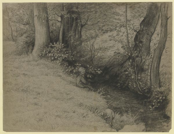 Gustave Le Gray captured this image of an oak nestled among the rocks in Fontainebleau using a photographic process. The photograph offers a complex interplay of light and shadow across the rocks, vegetation and tree. Le Gray’s choice of subject matter places this photograph within the Barbizon school of painting. However, rather than focusing on realism, Le Gray uses the photographic medium to experiment with form and composition. The textured surfaces of the rocks contrast with the smooth lines of the tree trunk, which creates a sense of depth and space. The use of light and shadow further accentuates these textures and forms. What's remarkable is the way Le Gray uses the camera to explore not just the representation of nature, but the very structure of the image itself, anticipating later formalist concerns with the medium's inherent properties. This approach invites viewers to consider how photography can move beyond mere documentation to become a medium for artistic expression and innovation.