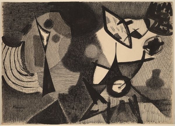 Louis Schanker made this print, Jai-Alai, with color woodcut, and it's all about shapes and the process of layering them. It's like he's saying, "Here's a game, but also here's how I make something." The texture is so key. You can almost feel the grain of the wood and the way the ink sits on the paper. Look at how the blues and greens overlap; there's a real physicality. Then there are the shapes, those pink triangles, the yellow crescent, all contained within these big, blobby forms that could be figures or fields. See how they have their own texture, a subtle ripple almost like water? It's like he's playing with representation and abstraction at the same time. Schanker reminds me of another process-driven printmaker, someone like Dox Thrash. Both of them embrace the happy accidents that come with printmaking. Art is just a game, right? A way of seeing and thinking and then sharing that with the world.