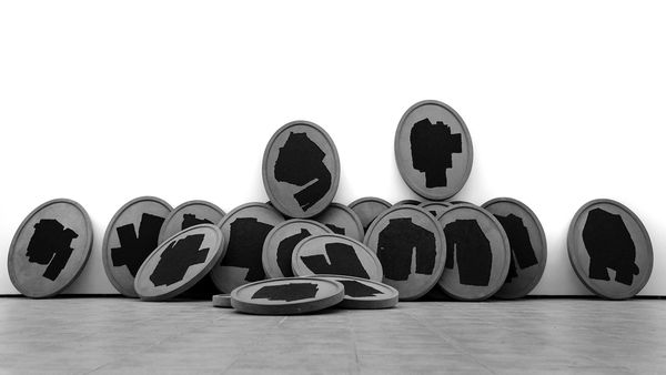 Toyen made 'the Shooting Gallery X' with pen and ink; look at the way this piece presents a world that's both incredibly detailed and also sparse, almost desolate. There’s something stark about the black ink on white paper, creating a high contrast that feels surreal. The wreaths scattered around the chair, each one painstakingly rendered with tiny lines, give a sense of endless space and repetition. The use of pen and ink allows for intricate details, but also a certain coldness, devoid of warmth or color. The chair with the wolf and rabbit feels like a stage set for some unknown drama. Think of the dreamscapes of Leonora Carrington, there’s a shared interest in the strange and unsettling. Ultimately, like all great art, this piece invites you to bring your own interpretations, to find your own meaning in its ambiguous landscape.