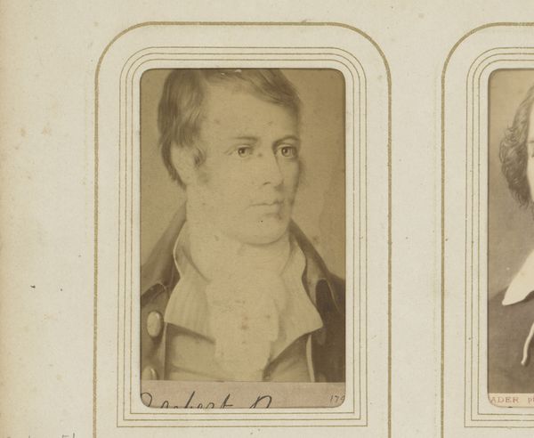 Editor: This is a reproduction of a portrait of Thomas Moore by Sophus Williams in 1878, based on an original portrait by Ernst Hader, rendered through photography. It's intriguing how a painting is captured through a photographic lens. What can you tell us about this mediated portrait? Curator: This photograph is an intriguing artifact in the history of image reproduction. Before widespread printing technologies, photographic reproductions made art accessible. Photography democratized images of important people and artworks; this one of Thomas Moore allows for widespread distribution of his likeness, impacting his posthumous public perception and cultural legacy. How do you think this photographic reproduction shifts our understanding of the original painted portrait by Ernst Hader? Editor: It makes me think about the role of photography as both a documentary and artistic medium. I suppose its function here is documentary. It is interesting to consider this as a conscious decision of selecting a particular form. How might people have perceived such reproductions at that time? Curator: Back then, it served both roles! Consider this through the lens of power and accessibility. Photographic reproduction provided a level of ‘truth’ in documentation while simultaneously enabling the circulation of images of prominent figures beyond elite circles. These portraits allowed engagement with historical figures like Thomas Moore that shaped the broader socio-political understanding of the period, though it certainly changed some visual dimensions like hues and contrasts from its painted format. Editor: That's a really interesting perspective; the socio-political implications of image reproduction makes me view the art differently, as a historical artifact and act of power, not just a portrait. Thanks! Curator: My pleasure; understanding the layers behind an image can completely shift our experience of viewing it.