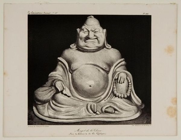 Editor: Here we have Honoré Daumier’s lithograph from 1834, "Porcelain figure from China." It's quite striking; the figure's exaggerated features and posture almost feel… satirical? How do you interpret this work? Curator: This lithograph offers a potent commentary on orientalism and European perceptions of Eastern cultures during the 19th century. Consider the historical context: France, like many European nations, was deeply involved in colonial endeavors. How do you think Daumier’s caricature might be reflecting or perhaps even critiquing this dynamic? Editor: It’s interesting you mention colonialism. The exaggerated features and title could be interpreted as mockery, perhaps highlighting the European tendency to exoticize and misrepresent other cultures? Curator: Exactly. The "Porcelain Figure" becomes a symbol, a vehicle for Daumier to explore the power dynamics inherent in cross-cultural representation. Is he making a statement about the figure itself, or is he using it to reflect on the mindset of the collector, Mr. Philipon, and perhaps the French society of the time? Editor: That’s a great point. The focus shifts from the object to the observer, implicating them in this act of orientalist appropriation. It raises questions about cultural ownership and the gaze. Curator: Indeed. By presenting this figure as a caricature, Daumier challenges viewers to consider their own preconceptions and biases, engaging with themes that still resonate within postcolonial discourse today. What do you make of Daumier's decision to depict this in a mass-produced print, accessible to a wider audience? Editor: Distributing it widely suggests he intended to spark public discourse and reflection. It makes you wonder how audiences reacted back then, and how differently we perceive it now. Curator: Precisely! Looking at this artwork encourages us to think about not just the piece itself, but also the ever-evolving historical and social landscapes that shape our understanding. Editor: I never thought about caricature as a form of social commentary. Thank you for enriching my perspective!