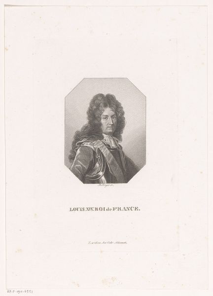 Editor: Here we have Alphonse Boilly's 1822 engraving, "Portrait of Duke Philip of Orleans." It’s striking how the subject seems almost floating in this oval frame. What can you tell me about what we're seeing here? Curator: Look closely at how Boilly uses the oval. It's not merely a decorative frame. Think of it as a symbolic window. The oval, a shape suggesting both wholeness and containment, often represents the soul or spirit in art. The Duke is presented to us not just as a man, but as an icon of leadership and status, separated, yet still present. Editor: So, it's less about realistic representation, more about symbolism? Curator: Precisely. And note the armour – what does that evoke for you? Editor: Well, war, protection... power? Curator: Exactly! But beyond the literal, armour is a psychological symbol. It signifies the layers we construct around ourselves, our vulnerabilities masked by a façade of strength. Consider how Boilly positions the armour almost confrontational. What aspects of Philip might Boilly be trying to draw attention to? Editor: Perhaps his authority or the image he wanted to project? Curator: Think about how power is presented in art across history; it is designed to convey particular information. The details, though small, build a complex narrative. Boilly masterfully uses engraving here to layer cultural memory and continuity into this “Portrat”. Editor: I see now that the seemingly simple frame is actually a tool for conveying meaning! Curator: Absolutely! These visual echoes across centuries invite a richer understanding, every viewing.
