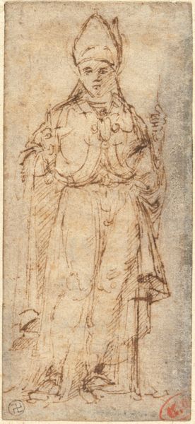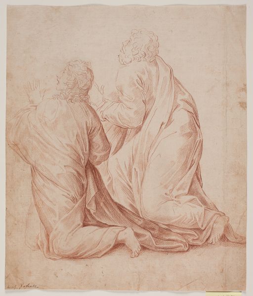 This artwork, "Studies of a Man," resides in the Metropolitan Museum of Art in New York and is rendered in red chalk. The sheet is divided vertically, each section showing a robed figure, seemingly deep in contemplation. The drawing's power resides in its lines, which describe form and volume with an economy of means. Note how the drapery folds are not merely decorative but convey the figure's stance and weight. The artist's choice of red chalk enhances the sense of depth, creating an interplay of light and shadow. This approach underscores the artwork's structural elements. In its composition, the drawing challenges the traditional academic study, moving towards a focus on the expressive potential of line and form. The artist seems less concerned with anatomical precision and more with capturing a fleeting moment, an emotional state. The figure’s averted gaze and the loose handling of the chalk create a sense of immediacy and intimacy. This immediacy disrupts fixed notions of representation, inviting us to engage with the figure on a more personal level.