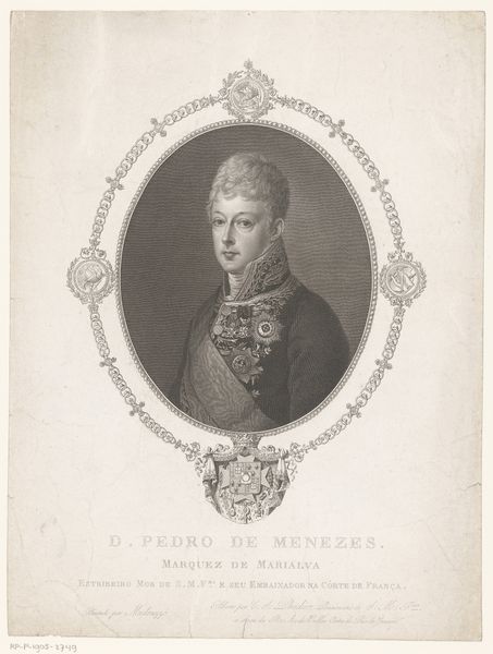 This stipple engraving depicts Frederik Willem IV, King of Prussia, and was created by Johann Daniel Laurenz sometime between 1770 and 1832. Images of political figures, such as this one, played a crucial role in shaping public perception and reinforcing the legitimacy of rulers. Made in Prussia, it reflects the prevailing social hierarchy and the importance of lineage in maintaining power. The artist uses visual cues, such as the subject's military attire and the ornate lettering, to convey authority and prestige. The oval frame evokes a sense of classical formality. Historical context, the artist's biography, and the socio-political conditions of Prussia inform our understanding of the artwork. The study of prints and engravings provides valuable insights into the circulation of images and their impact on society. We can research how the print was distributed and received, and what role it played in constructing the image of the Prussian monarchy.
