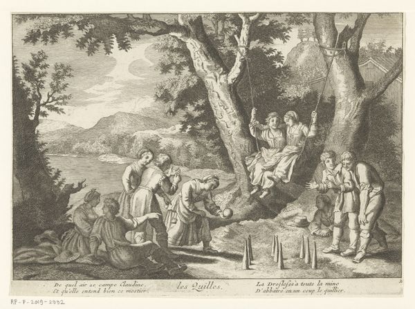 Editor: This is William Hogarth’s “The Pool of Bethesda (St. John, Chapter 5),” an engraving from 1772, housed at the Metropolitan Museum. The figures are quite theatrical and I’m curious about what the angel figure signifies. What do you see in this print? Curator: Beyond the obvious biblical narrative, Hogarth engages with deep-seated anxieties surrounding charity and healthcare, prevalent in 18th-century England. Consider the context: this image served as a ticket to raise money for a London hospital. How do you think he uses symbolic language to convey this charitable message? Editor: Well, I guess the sick and disabled figures represent the need, but there's also the serene figure of Jesus, perhaps offering a promise of healing... And is that an angel I spy hovering above? Curator: Precisely! Note the composition—the figures are grouped to highlight different aspects of suffering and hope. Hogarth subtly references artistic traditions, inviting the educated viewer to draw parallels with earlier depictions of divine intervention and healing. The angel reminds us of earlier religious scenes, linking current efforts to older, possibly divinely sanctioned actions, thus reinforcing trust and inspiring potential charity. Do you see a relationship to social commentary here? Editor: Absolutely. It's a way of elevating the status of the hospital, presenting it as something almost divinely ordained, more than a social necessity! Curator: And think about the print medium itself; it enabled the broad distribution of this image, embedding the hospital's appeal into the visual consciousness of Londoners. The image creates cultural memory around care. How fascinating is it to view historical images through the lens of the meanings they carry. Editor: Very fascinating indeed, to see this print less as a straightforward depiction of a bible story, and more as a carefully constructed piece of persuasive visual rhetoric tied so closely to its time!
