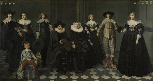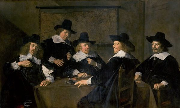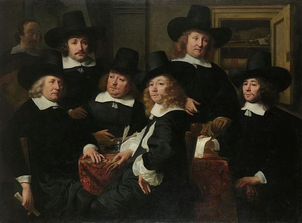 Govert Flinck painted this group portrait of the Governors of the Kloveniersdoelen, or Civic Guard, in Amsterdam, sometime in the mid-17th century. The painting offers a glimpse into the world of Dutch civic life during the Golden Age. The governors, all men, are depicted with the symbols of their status, wealth, and power. Their confident postures convey their authority and position within the city's social hierarchy. The painting reflects the complex relationships between civic duty, social status, and masculine identity in the Dutch Republic. However, beyond the surface of civic pride and accomplishment, the painting also evokes a sense of tension and unease. The governors appear stiff and detached, their expressions betraying a hint of internal conflict. By portraying the governors with such nuance and complexity, Flinck challenges conventional representations of power and invites viewers to consider the human dimensions of leadership.