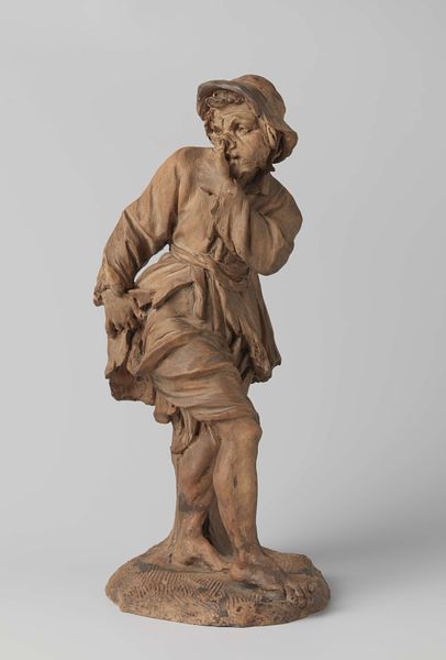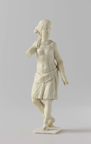 Editor: We're looking at a smaller marble sculpture today, "Model for a Statue of a Hero," created by Étienne-Hippolyte Maindron sometime between 1825 and 1845. It feels incomplete, perhaps a study for a larger piece. How do you see this within the broader context of its time? Curator: Well, considering its creation in the early to mid-19th century and its Neoclassical style, it's essential to consider how figures of heroism were being constructed and consumed during that era. Whose heroic image was being publicly promoted, and for what purpose? Was it tied to Napoleon's legacy, or perhaps earlier figures from antiquity? Editor: That’s interesting! I hadn’t thought about the role of museums in shaping the definition of a hero during that time. It also makes me think of this artwork's scale, suggesting the role of intimate reception versus something public. Curator: Precisely! Think about where a sculpture like this would likely have been displayed initially – perhaps within a collector's cabinet, rather than a public square. That shift impacts its role. This piece perhaps signifies the rise of a wealthy class interested in private admiration of heroism rather than public propaganda. Would you say this version humanizes its hero through its display scale and implied audience? Editor: That perspective really shifts how I interpret this work, because if the sculpture was intended to appeal to personal values over the political, Maindron also had to imbue these sculptures with symbolic value for their buyer. So fascinating! Curator: Yes, the intersection of art, the state, and the emerging role of wealthy individuals really adds layers to these historical artworks. The sculpting techniques are worth considering as well in respect to cultural narratives that support or refute those intersections. Editor: Definitely. Thinking about its Neoclassical style in conjunction with the era really has shed a new light on this sculpture. Thank you. Curator: You’re welcome. These intersections can lead to profound revelations about art's place in society.