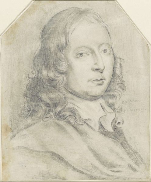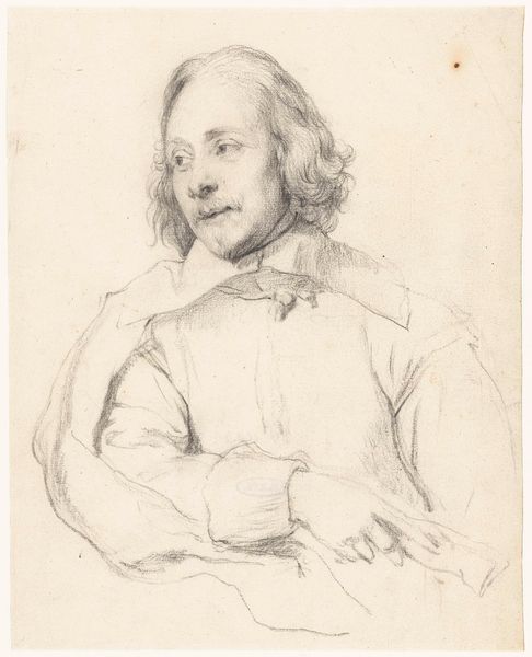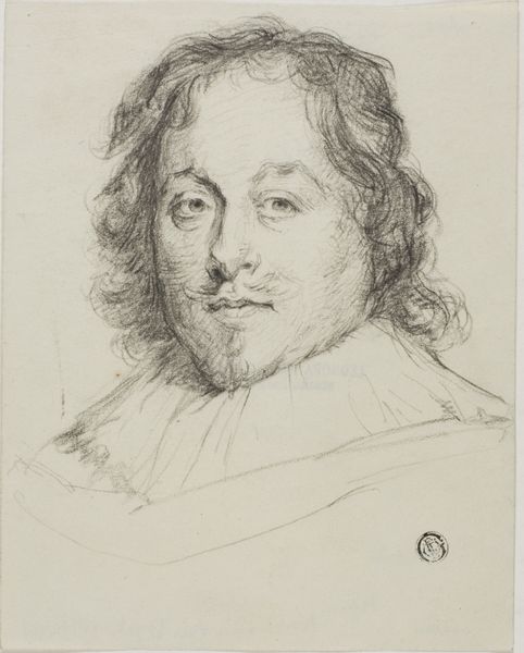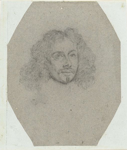 Curator: The delicate strokes of chalk and pencil in Robert Nanteuil’s "Portrait des Kardinal Mazarin," currently residing at the Städel Museum, immediately convey a sense of quiet introspection. What's your take, Editor? Editor: It's remarkably simple in its making, almost rudimentary, but powerful. You can really see the texture of the paper coming through; it reminds you of its material reality as a common support for sketches like this. Curator: Absolutely. And considering Mazarin's significant role as a cardinal and statesman in 17th-century France, it begs the question: what narrative choices were made by Nanteuil? It lacks the usual opulent adornments associated with power, choosing instead to offer an almost vulnerable depiction of the man. Editor: Perhaps the point was less about portraying authority and more about the physical act of representation. How does the weight of the chalk, the scratching of the pencil impact the overall work? It's interesting to note the minimal application, isn’t it? Not excessive, and perhaps constrained by access to these specific materials at the time. Curator: Indeed, this stripped-down aesthetic directs us to confront the socio-political elements that underpinned Mazarin’s identity. Is the work, in effect, highlighting and maybe subverting his role as the embodiment of autocratic power by presenting him as something rather accessible? Editor: The act of sketching is key, especially when it captures figures of power. We see a rapid production, a means of dissemination of images across a pre-photographic world that shapes how power is manufactured and perceived. And who was it manufactured for? Was it strictly for elites? Curator: I agree. We have to consider the audiences engaging with prints based on sketches such as this. These portrait sketches challenge and negotiate visibility, offering a somewhat unfiltered view that intersects with complex societal perceptions around faith, class, and influence. Editor: Precisely! It compels us to consider the labor involved, and the consumption by a specific, expanding social stratum. It’s really fascinating to peel back those layers of meaning inherent in the artistic and social framework of the time. Curator: This piece encourages us to actively rethink art’s relationship to politics and cultural representation. Editor: Yes. It urges me to dig deeper into the actual means through which such power was not only imagined, but produced and circulated within society through printed images.