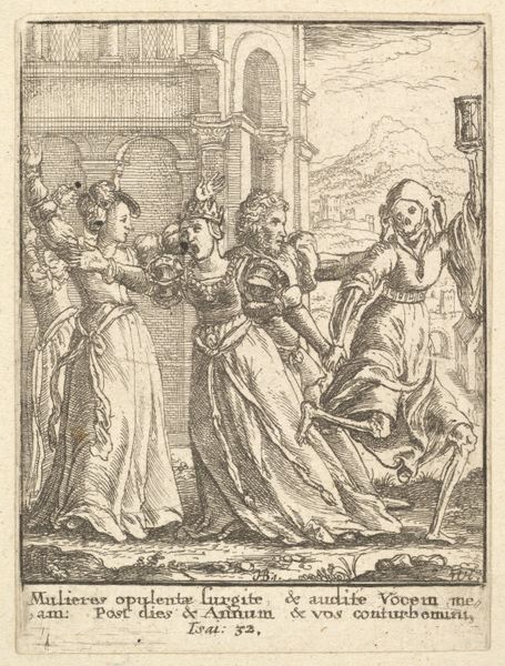 Bernard Picart created this print, "Apollo lauwert Terentius," sometime before his death in 1733. The symmetrical composition, framed by classical architecture, evokes a sense of formal order and idealized harmony. In this allegorical scene, Apollo stands centrally, bathed in light, holding a lyre. The surrounding figures, including Terentius being crowned, invite an exploration into the relationship between artistic achievement and divine inspiration. The figures are rendered with precise lines, while the detailed background suggests depth and perspective, adhering to classical principles of representation. But consider how the print also destabilizes conventional hierarchies. The allegorical figures seem to float in a mythical world. The structure invites a semiotic interpretation, where each character is not merely a figure but a signifier contributing to a larger narrative. The print challenges viewers to decode its visual language, engaging with the ongoing dialogue between art, myth, and cultural values.