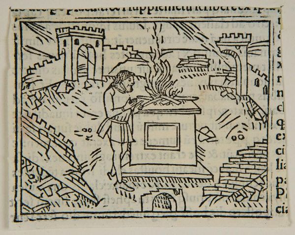 Editor: This captivating image, "Book XXII.17. Romans see oxen breathing out fire..." is an anonymous work. The stark black and white and dramatic subject matter give it an otherworldly feel. What historical context illuminates this piece? Curator: Consider the role of the printing press. This image, likely a woodcut, made knowledge accessible. The fantastical scene of oxen with fiery horns served to both inform and instill awe, shaping public perceptions of the past and the unknown through dramatic and easily reproducible imagery. Editor: So, it's less about historical accuracy and more about shaping a specific narrative? Curator: Precisely. How does this imagery contribute to the construction of cultural memory and societal values at the time? Editor: That makes me see the print in a whole new light, as a tool for shaping belief! Curator: Indeed. It prompts us to think about how images still function in similar ways today.