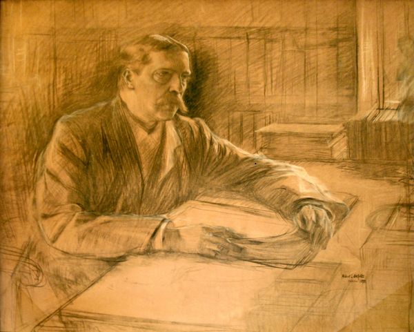 Editor: This portrait of Sir Frederick Ashton, by Derek Hill, captures him in these warm, earthy tones. What do you see in this portrait? Curator: The earth tones evoke a sense of groundedness, don't they? Ashton's gaze, averted yet intense, suggests a deep well of inner creativity. Does the colouration remind you of anything? Editor: It makes me think of sepia-toned photographs, almost like a memory. Curator: Precisely! It creates a sense of looking back, perhaps at a celebrated past or a personal history held within. The unfinished quality, the visible brushstrokes, add to this feeling of a memory being formed. Editor: It's fascinating how a portrait can embody so much more than just a likeness. Curator: Indeed, it's a vessel for cultural memory.