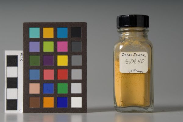 Editor: This is "0 Bitumen 2," produced by F. Weber & Company. It appears to be pigment in a jar. What stands out to you about this piece? Curator: The materiality is key here. Bitumen, derived from petroleum, speaks to industrial processes infiltrating art. Consider its historical context—mass production, distribution networks, and the labor involved in creating these artist materials. How does this challenge traditional notions of artistic creation? Editor: That's a great point. It makes me think about where art begins. Thanks for sharing your insights! Curator: And thank you for making me consider the broader implications of art supplies and their significance.