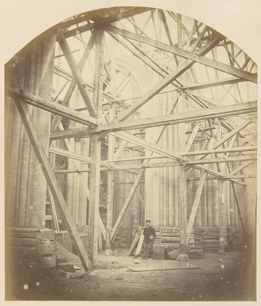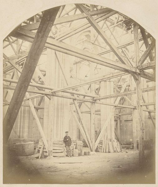 Adolphe Terris captured Église Saint-Vincent-de-Paul te Marseille in aanbouw with a photographic process of the 19th century. This church was built in a period marked by significant social and political changes in France. It is difficult to consider the construction of this church without acknowledging the hands that built it. Who were the workers who raised these stones? What were their lives like, and what were their hopes? How did their labor contribute to a structure meant to inspire awe and reverence? In the photograph, a lone man sits in the foreground, amidst the chaos of construction, perhaps a worker taking a break. His presence is a reminder of the human element behind these grand structures. His identity, like those of the builders, remains shrouded in time, yet their collective efforts echo through history. This work of art prompts us to reflect on the labor, lives, and identities intertwined in the creation of cultural and religious landmarks.