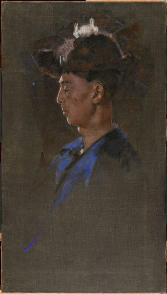 Curator: Looking at this compelling work, we see "Self Portrait" painted by Tetyana Yablonska in 1945, rendered in oil. It offers us an intimate glimpse into the artist's world. Editor: My first impression is one of quiet resilience. There’s a directness in her gaze, an unvarnished quality. The color palette is muted yet striking, especially the cobalt blue of her shirt against that cream backdrop. Curator: Indeed. Yablonska painted this self-portrait during a pivotal historical moment, right at the close of the Second World War. Contextually, art during this period in the Soviet Union served a crucial purpose for national identity. Editor: And here we see something subtly defiant in its stark simplicity. During a time of enforced collective identity in art, Yablonska presents a uniquely individual expression. The subject's gaze challenges the viewer, almost questioning our role in bearing witness. Curator: Precisely. While working firmly within the constraints and structures of the state, artists often expressed coded visual languages and explored individual stories within acceptable parameters. What might seem like realism on the surface is much more. Editor: Absolutely, and I find her almost ordinary presentation especially compelling. It counters the heroic representations often expected in socialist realism, emphasizing the dignity and quiet strength of the individual during times of incredible social upheaval. The painting pushes back against imposed narratives. Curator: Note her hands, clasped tightly; they seem to hold stories, unspoken feelings. I agree there’s a subversion at play here. Yablonska delivers a painting with great humanism, a beacon during a dark time, reminding us of shared vulnerabilities. Editor: Her work transcends mere portraiture. It makes visible the power of resistance inherent to simply existing and creating during times when both are suppressed. For me, this is a profound statement about what it means to be an artist, a woman, and a citizen during wartime. Curator: Ultimately, Yablonska offers a rare look inside and asks us to think about our relationship to the work. Editor: This self-portrait acts as a timeless testament to the complex layers of identity, endurance, and the quiet rebellions woven within everyday life.