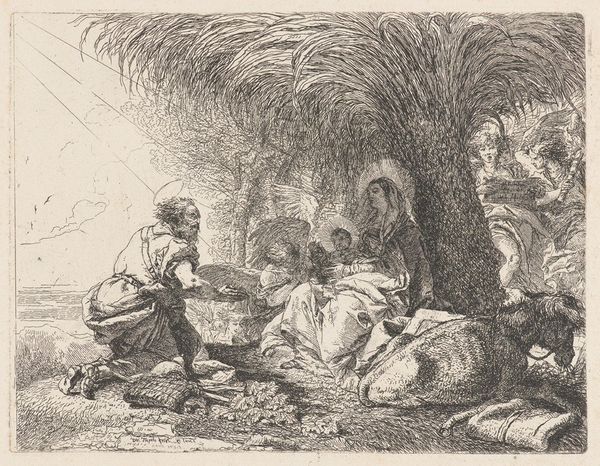 "The Madonna, Child and Angels Entering the Boat" was etched by Giovanni Domenico Tiepolo sometime between 1727 and 1804. Tiepolo lived in an era of aristocratic patronage, where religious and mythological scenes served as both artistic expression and social commentary. Note how the etching renders a biblical narrative with an emphasis on movement, emotion, and an almost theatrical composition. The figures are not simply placed in the boat, but are actively entering it, creating a sense of urgency and purpose. Tiepolo employed the etching needle with a freedom that allowed him to develop a distinctive style. Look at the angel whose embrace of Mary appears both protective and tender. It’s a challenge to represent the divine, but Tiepolo’s work offers a space to contemplate how the narratives of religious history are deeply interwoven with human experiences.