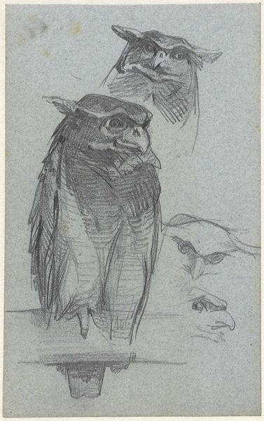 Curator: "Maraboe in de regen," created around 1905 by Theo van Hoytema. It resides here at the Rijksmuseum, a beautiful study in pencil and ink. Editor: The overall tone immediately strikes me as melancholic; the downcast marabou looks almost defeated by the weather. There’s something universally relatable about it. Curator: It's fascinating to see Hoytema, primarily known for his decorative lithographs, exploring such raw emotion with simple pencil strokes. It encourages us to examine how artistic reputations box people into expectations based on historical bias. Editor: I find myself dwelling on the rain itself. In many cultures, rain is associated with cleansing and renewal. Is the marabou merely enduring a storm, or is there a deeper symbolic layering to its posture? What meaning does the artist assign it? Curator: I agree. Consider the socio-political context in early 20th century Netherlands—a period grappling with industrialization and its impact on nature. This solitary marabou, vulnerable against the downpour, could be read as a subtle critique of human encroachment. Editor: Absolutely, and even beyond that, marabous often symbolize patience, adaptability, and survival in challenging environments. Seeing it rendered in such delicate lines lends it a kind of fragility; a poignant counterpoint to the bird's otherwise resilient nature. It touches on core aspects of human existence and collective memory. Curator: That really expands how we interpret the visual imagery. Hoytema challenges us to rethink stereotypical power dynamics by portraying this normally resilient figure in a vulnerable light. This piece transcends merely depicting an animal. It provokes dialogues on societal inequalities and hidden anxieties. Editor: Reflecting on "Maraboe in de regen," the image is much more than it seems on the surface. Curator: Agreed, a deceptively simple image that sparks discussions on both personal vulnerability and collective struggles within a broader social and historical tapestry.