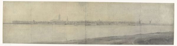 This subtle, panoramic view of Fort de Voorn was drawn by the frères Moreau in 1672. It’s very faint, almost a memory, isn't it? Like a landscape seen through fog, or a dream fading as you wake. Look at the texture of the paper. It’s been pieced together, almost like a patchwork. You can sense the hand of the artist here, not just in the marks, but in the very structure of the support. And the marks themselves are so delicate, so tentative. It makes me think of Agnes Martin's grids, not in how it looks, but in the searching quality, the sense of something fugitive and transient. See how the trees on the left barely exist? They're just a few lines, a suggestion of form, yet they evoke a whole world. It reminds you that art is about process, about looking and feeling, not about perfect representation. Like a whispered secret, it invites you to lean in, to look closely, to imagine what lies beyond the visible.