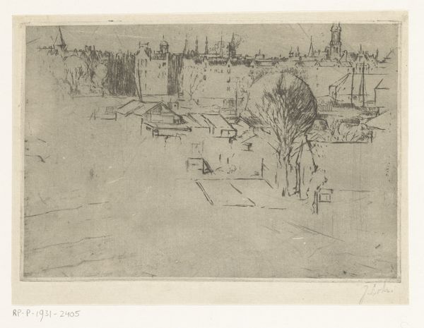 Johannes Löhr made this etching, ‘Huizen in aanbouw,’ probably sometime in the early 20th century. What strikes me right away is how Löhr uses such simple, direct lines to capture a scene of urban construction. It’s all in the process here, right? I mean, look at the texture! It’s like he’s carving into the metal plate to find the image, not just drawing it. The lines aren’t precious; they’re there to build the scene, layer by layer. The scaffolding on the left — see how the lines are almost frantic, like a jumble of toothpicks holding everything up? It’s not about perfect representation; it’s about the energy of building, the chaos and the potential. It reminds me a bit of Piranesi’s etchings of Rome, but with a grittier, more modern feel. It’s like Löhr is saying, “This is what it feels like to be in the middle of change, of something new being built.” Art isn’t about fixed meanings. It’s an ongoing conversation about how we see and experience the world.