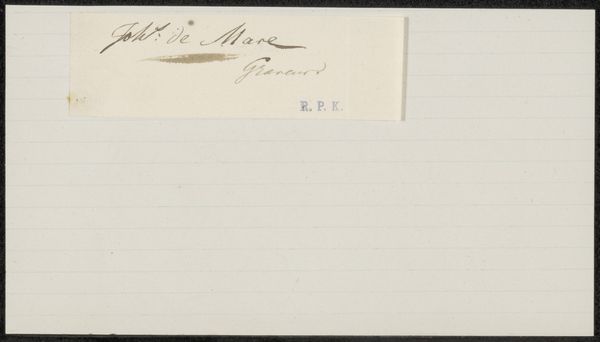 Editor: This is "Handtekeningen van Johannes Christiaan Schotel," dating from roughly 1797 to 1838. It’s a drawing on paper, using ink and pencil, and it almost looks like a page torn from a personal sketchbook. What can you tell me about it? Curator: This seemingly simple collection of signatures actually offers a glimpse into 19th-century artistic production. Consider the materials: paper, ink, pencil. Were these materials readily available, or were they precious commodities reflecting social status? Editor: That's an interesting point. I hadn’t really thought about the paper itself as a reflection of social context. Curator: Exactly. And let’s think about the act of signing one's name. Was it merely a perfunctory task, or did it represent something more? Whose names are these, and what relationships did Schotel have with them? Knowing who he corresponded with could tell us about his artistic network. Editor: So, instead of focusing on artistic vision, we're thinking about the nuts and bolts—the physical realities of making art. How would that understanding change our view of Schotel? Curator: Precisely! Perhaps Schotel wasn't just a solitary genius. These signatures, this page, speak to a world of collaboration, patronage, and material constraints that shaped his creative output. This sheet might have served as a receipt of sale to a patron, evidence of social and economic exchanges, rather than just a casual autograph collection. Editor: So it reveals his world through the evidence of labor and relationships. That makes a seemingly mundane piece far more interesting. Thanks! Curator: My pleasure. Thinking about art as a product of material conditions opens up many new avenues of interpretation.