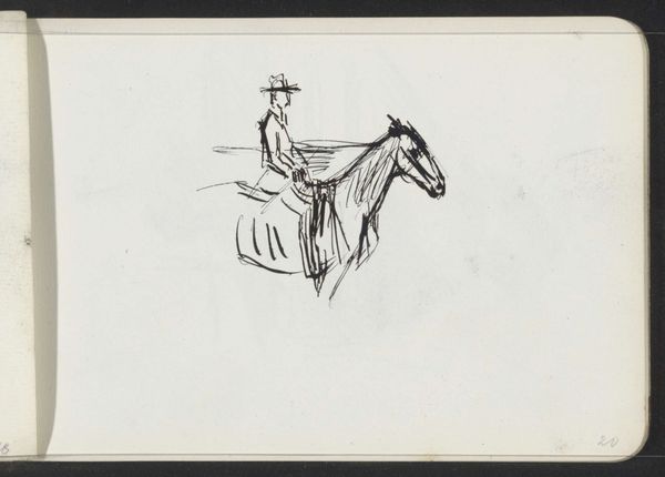 Curator: This sketch, by Oskar Kokoschka, currently resides in the Tate Collections. Look at the rapid, almost feverish application of colored pencils. I wonder what was on his mind? Editor: There's a fragility to it, a tender quality despite the subject being a figure on horseback. It’s as if the artist is trying to capture a fleeting memory. Curator: The material economy of the sketch, the paper and colored pencils, speaks to accessibility. It democratizes art-making, moving beyond formal portraiture to something more immediate and personal. Editor: I love that. The raw energy transmitted through the colored pencil is just so palpable; you can sense Kokoschka wrestling with line and form right there on the page. Curator: It's interesting to consider the societal implications of such a quick, unrefined work finding its way into a major collection. It challenges our notions of value and skill. Editor: It's a reminder that even a simple sketch can hold immense power, a testament to the human spirit's ability to find beauty in the everyday.