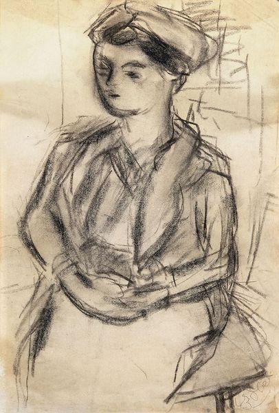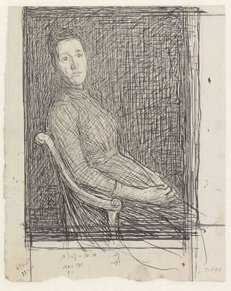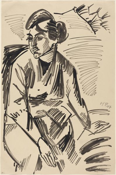 Oskar Kokoschka made this lithograph, The Concert III, with ink on paper. Look at the hatching of the marks, this energetic, restless quality. Kokoschka is always thinking about process: he's almost restless, trying to get everything down at once. There's a great deal of energy in this drawing. The surface is alive with marks and the contrast between the light and dark gives it a real sense of drama. Notice the horizontal marks in the background, they create a claustrophobic space, like prison bars, against which the figure is silhouetted. The figure has their hand up to their face, are they thinking? Are they tired? The intensity of the gaze and the lines describing it are incredibly potent. Kokoschka had a long life and career, and this work reminds me of his earlier, more angst-ridden pieces. There is a great deal of art historical exchange here with artists like Munch, but Kokoschka brings something completely his own, embracing emotion and passion.