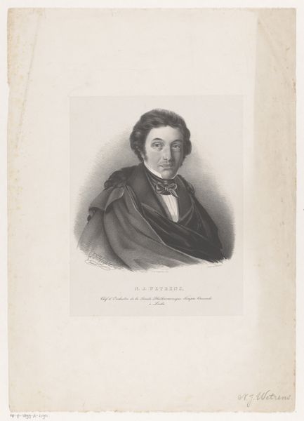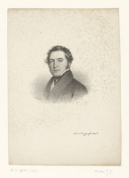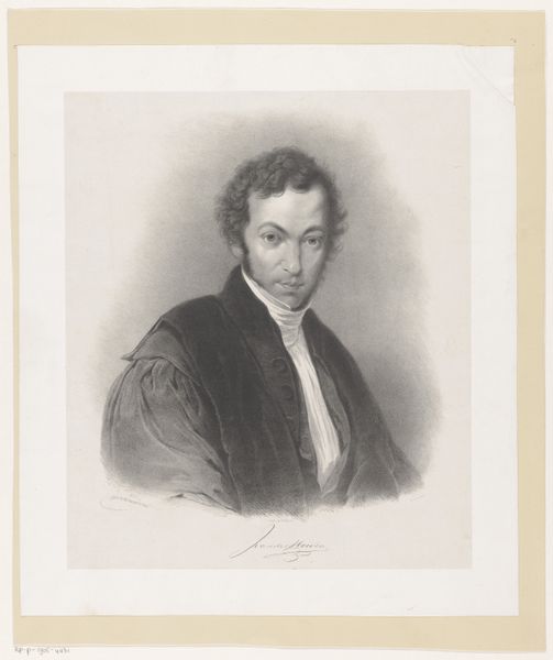 Curator: This is a print from 1822 entitled "Portret van Louis Choris." It is an engraving on paper. Editor: It feels quite serious, almost somber. The hatching technique and the monochrome palette give a tangible feel, as does the layering of different greyscale strokes, highlighting a sense of restrained tension in his expression. Curator: Indeed, the portrayal captures something of Choris's complicated legacy. As a man, Louis Choris had a fascinating and turbulent life, marked by exploration and documentation during a period of significant colonial expansion and scientific discovery, traveling as an artist on expeditions. One might even use him as a case study when interrogating how artists acted complicit with expanding colonialism and global cultural dominance. Editor: Speaking more generally about its form, what stands out is how meticulously crafted this engraving is. Each line contributes to a nuanced rendering of form and texture, which seems heightened by its stark monochrome that enhances this sense of texture in the face and clothing. What else should we observe about the artwork's technique and artistic intent? Curator: Let's not ignore the importance of portraiture during the early 19th century. These kinds of works offered a vital medium through which social identity and status were asserted and negotiated within the bourgeoisie and aristocratic circles. Think about the ways in which artists such as Choris negotiated patronage during an age defined by power. Editor: Absolutely. And within that historical lens, this work demonstrates that it is in and of itself an act of image construction rather than a "faithful" reproduction. His expression—it all creates the overall feel. I am glad that we dove in. Curator: The man becomes a stand in for so much of this important era! What else is revealed to those who consider this man today?