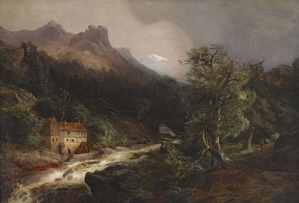 George Harvey painted "Rob Roy's Castle, Scotland" to depict the rugged landscape and historical weight of Scotland through its ruined castle, a potent symbol of time's passage and lost power. Ruins, like the castle here, appear throughout art history as reminders of past civilizations and the transience of human achievement, harking back to the classical world. Yet, what makes this ruin so fascinating is its association with Rob Roy, a figure shrouded in myth and rebellion. He embodies defiance against authority and the romantic ideal of the outlaw, echoing figures like Robin Hood. The presence of figures within the landscape invite viewers to contemplate their own place within history and nature. Consider too, the sublime vastness of the Scottish Highlands, evoking feelings of awe and insignificance. This landscape touches a deep, collective memory of resilience, independence, and the haunting beauty of decline.
