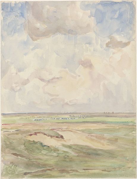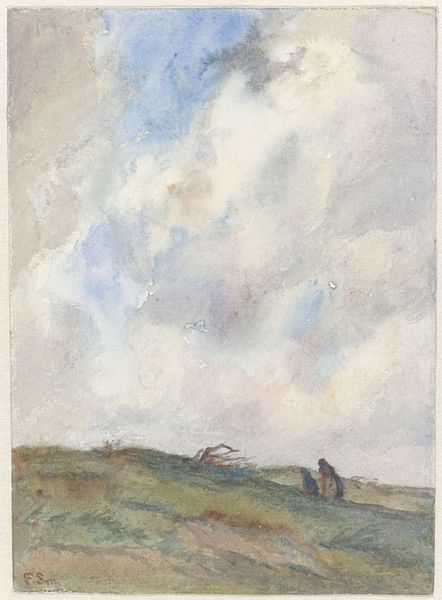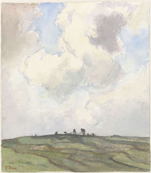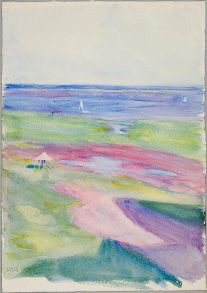 Editor: This small watercolor, "Highland Light" by Denman Waldo Ross, has such a gentle quality. It makes me feel peaceful, but also a little melancholy. What do you see in it? Curator: I see a symbol of resilience, but within a specific cultural context. Lighthouses often represent safety and guidance, but for whom? Ross, working perhaps from a position of privilege, might not fully grasp the realities of those whose lives depend on the light's warning. Editor: That's an interesting point. I hadn't thought about it that way. Curator: Whose stories are missing from this seemingly tranquil scene? Consider the lives of the keepers, their isolation, and the communities reliant on the sea, often marginalized and unheard. Does that resonate with you? Editor: Yes, I see what you mean. It makes me think about how even beautiful images can carry complex social narratives. Curator: Exactly. Art isn't just about aesthetics; it's a reflection of power, perspective, and the stories we choose to tell, or not. Editor: I'll definitely look at art with a more critical eye now.