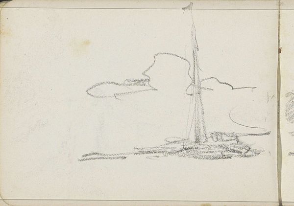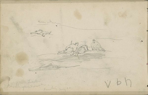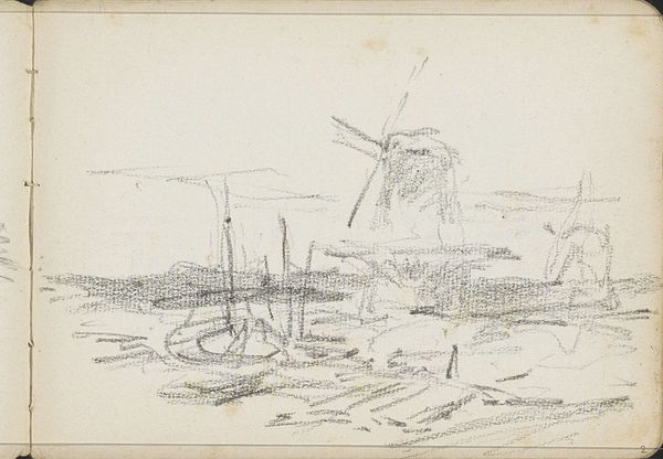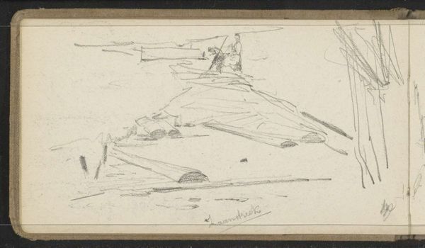 Willem Cornelis Rip made this drawing called 'Figuur op een golfbreker' with graphite, rapidly mapping an impression of a figure on a breakwater. Look at how Rip uses a flurry of marks to suggest the forms of the breakwater. There's a real freedom in the directness of his lines, like he's thinking through drawing. The textured hatching on the left side gives way to softer, more blurred lines as the composition fades away on the right. It’s not about precision but more like a feeling, an attempt to capture something fleeting. The vertical lines on the left edge suggest a kind of frame. Are we inside or outside? There's an intimacy to the piece, like we're peering in on a private moment. Rip is like Whistler in this respect, they share a focus on tonal qualities and a love for the immediacy of sketching. For both of them, the process of artmaking feels more important than the finished work. It’s about embracing uncertainty and the beauty of the unfinished.