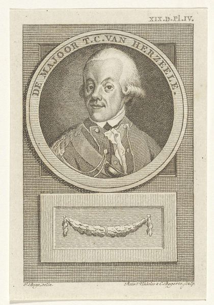 Editor: Here we have an engraving from somewhere between 1740 and 1800, titled "Portret van Karel Christiaan van Nassau-Weilburg", attributed to an anonymous artist, here on display at the Rijksmuseum. There's a striking formality to this portrait despite the boyish face of the sitter. What echoes through history do you find in this piece? Curator: What strikes me first is the framing—the oval, a very conscious choice that harkens back to classical antiquity. It whispers of emperors and philosophers, even as we gaze upon a young prince. Do you notice how that oval both contains him, but also presents him *for* our viewing? Editor: Yes, it’s like a looking glass, pulling someone from the past. Curator: Precisely! Engravings, especially portraits like this, were about crafting an image as much as capturing a likeness. What symbols of power and status are apparent to you? Editor: Well, his clothing certainly implies wealth and status, and the name inscribed below roots the image in place and time. But beyond that, it’s subtle. Curator: The subtlety itself speaks volumes. There isn't a need for blatant displays. The averted gaze, the elegant curl of his wig - these are codes readily understood by the intended audience. This isn’t just a depiction of a boy, it’s the careful construction of a dynastic image intended for circulation and, ultimately, remembrance. A potent blend of propaganda and preservation. Editor: I never thought about engravings as being…propaganda. But that makes complete sense in terms of spreading and consolidating power. I’ll look at these very differently from now on! Curator: Every symbol, every flourish, carries meaning, designed to resonate through generations. That is why we must be keen cultural readers and iconographers when viewing such portraits!