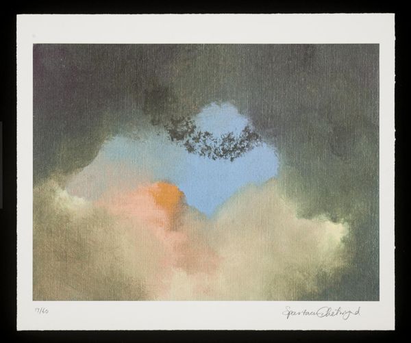 Donald Holden created "Yellowstone Fire XXI" using watercolor. The painting is dominated by a strong contrast between the dark foreground and the burst of reds and yellows above. This contrast creates a visual tension, evoking a sense of nature's power and volatility. Holden's technique uses the fluid properties of watercolor to blur the lines between representation and abstraction. The textures are soft and granular; color seeps into color; the washes create depth and atmosphere. In terms of semiotics, we can read the dark purples as signs of destruction and the oranges as signs of renewal, mirroring the natural cycle after a forest fire. This challenges fixed meanings of landscape art, as it moves beyond the picturesque to engage with ecological processes. Ultimately, the painting's strength lies in how its form destabilizes our traditional understanding of landscape, inviting viewers to consider the dynamic and often destructive forces at play in nature.