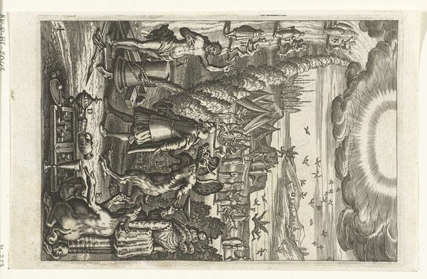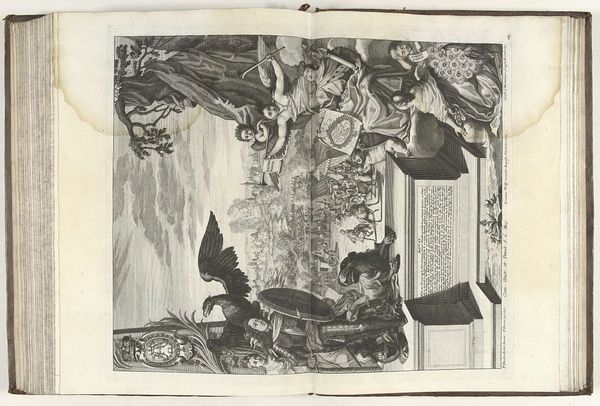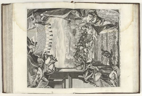 Gottfried Stein created this engraving of the arrival of Maria Anna of Austria in Lisbon in 1708. It commemorates the arrival of a high-status figure and it invites us to consider the relationship between power, representation, and the public sphere in early 18th-century Europe. The image presents us with an elaborate scene: angels, a grand city, and a formal structure. Consider the visual language used. The artist employs allegory and classical references – like angels – to elevate the status of Maria Anna. This wasn't just about recording an event. It was about constructing a particular image of power. This image was made at a time when the institutions of monarchy and aristocracy still held significant sway. The image suggests a conservative worldview, reinforcing existing social hierarchies through visual propaganda. To understand this image fully, we can look at the history of the Austrian and Portuguese royal families, the conventions of Baroque art, and the role of printmaking in disseminating political messages. By engaging with such resources, we can understand how art is always embedded in a specific time, place, and set of social relations.