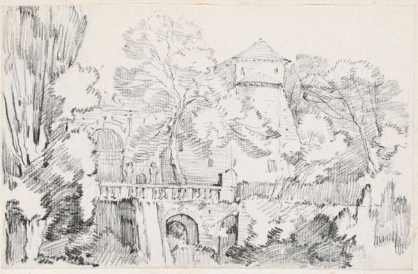 Curator: Here we have Joseph Marie Vien's "Roman Ruins with a Stand of Cypresses," a drawing likely rendered between 1744 and 1750, sketched in pencil and pen. It portrays a crumbling classical structure amidst a natural setting. What are your initial thoughts on viewing this work? Editor: Immediately, a sense of serene melancholy washes over me. The ruined architecture, juxtaposed with the vibrant cypress trees, speaks to the passage of time, the impermanence of human achievement against the backdrop of enduring nature. Curator: Vien created this landscape during a politically charged era. The Enlightenment was taking root, encouraging new perspectives on traditional authority, while the arts served as a vital tool for conveying national pride. Note how meticulously he delineates the forms; it emphasizes the visual language employed to evoke themes of glory and antiquity, both heavily exploited for nationalist agendas. Editor: Yes, I can certainly appreciate that. These landscapes, with their focus on architectural remnants, not only displayed artistic prowess but also carried complex symbolic weight. The broken walls can stand as potent reminders of political and social transformations, serving as prompts to reflect on current power dynamics. How are we choosing to build our ruins? What narrative are we leaving behind? Curator: I think Vien masterfully illustrates a narrative by connecting the past and the present. It reminds us that cultural identities are not static but evolve over time and must be studied carefully. The ruins are not just relics, but evidence that cultural touchstones of society shift constantly under different regimes. Editor: Absolutely. It is this very aspect, the fusion of history, culture, and philosophy in art, that continues to ignite thought-provoking discussions and inspires actions far beyond the aesthetic appreciation of it. I see here the beginnings of cultural discourse, reminding us how art both reflects and influences socio-political narratives, demanding us to continually reflect on their intertwined trajectory. Curator: I'd agree that examining artwork like this one helps us reflect on society. What do we build and preserve? What do we allow to decay? Vien, it seems, was quite interested in this, using Roman ruins as a mirror for France. Editor: Indeed. Vien invites us to contemplate the future by understanding our past, and this simple pencil sketch is a beautiful catalyst for reflection.