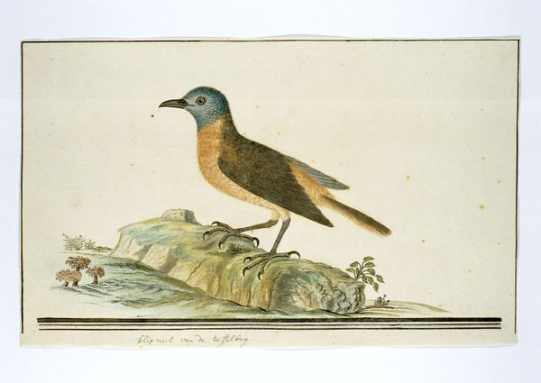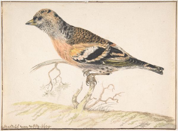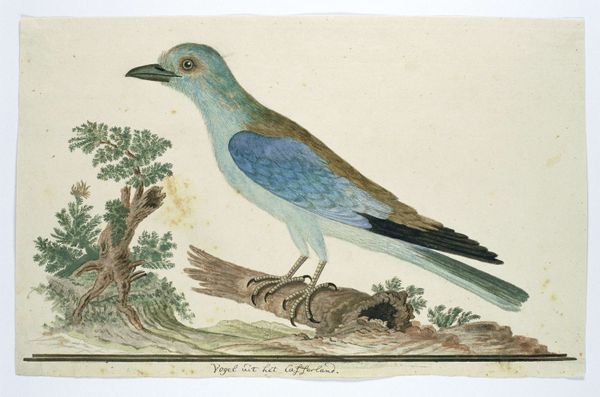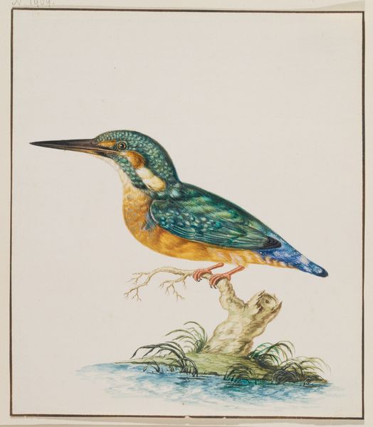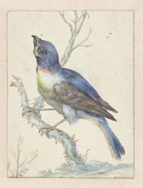 Jan Weenix created this watercolor and gouache drawing of a bee-eater perched on a branch during the late 17th or early 18th century, a period when the Dutch Golden Age was fading, but its legacy of detailed naturalism lived on. Weenix, like many artists of his time, contributed to a visual culture deeply entwined with exploration and colonization. Images of exotic animals and birds were not merely scientific observations, but also symbols of wealth, knowledge, and power. The bee-eater, with its vibrant plumage and migratory habits, would have been a fascinating subject, embodying both beauty and the reach of global trade. These depictions, while seemingly objective, often reinforced a Eurocentric worldview, shaping perceptions of the natural world and its relationship to colonial ambitions. The emotional resonance lies in the tension between the bird’s inherent wildness and its capture within the frame of European artistic and scientific scrutiny.