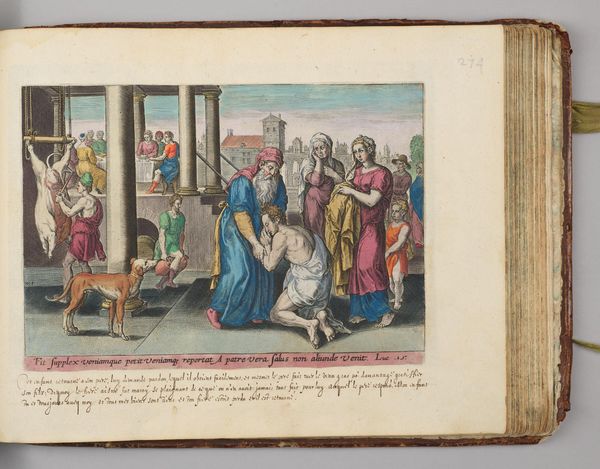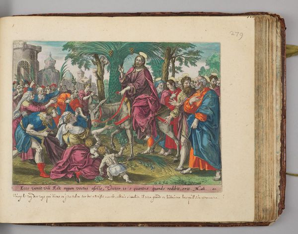 Editor: This is Hans Collaert the Elder’s “Zacchaeus in the Tree,” I don't have a date for it, and it appears to be a print. The figures seem so crowded together. What can you tell me about it? Curator: Collaert's print highlights the material conditions of image production and consumption. Consider the paper, the ink, and the labor involved in creating multiple impressions. How might these factors have influenced the print’s reception among different social classes? Editor: So, you're less focused on the biblical narrative and more on the production itself? Curator: Exactly. The multiple impressions would have made it more available to a wider audience. Editor: I see. So, it's not just about the religious subject but the act of making and distributing the image. Curator: Precisely, challenging the traditional art hierarchy. Editor: Thanks, that's given me a lot to think about regarding its meaning and accessibility.