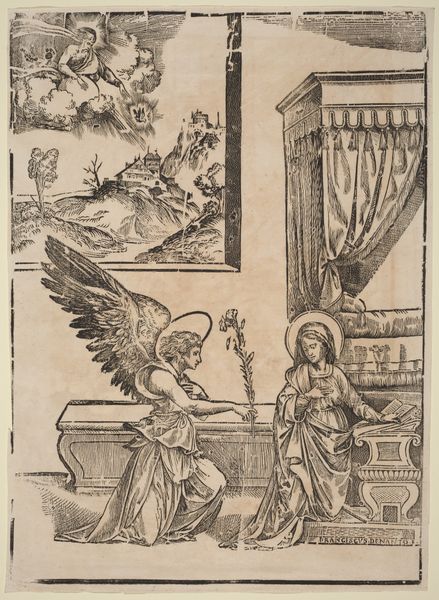 Israël Crispin le Jeune created this engraving, "The Annunciation," in the 17th century. During this time, religious art served as a powerful tool for cultural and moral instruction. Here, we see the angel Gabriel informing Mary that she will conceive and bear a son. But consider Mary's position: she embodies both divine grace and human vulnerability, caught at the intersection of heaven’s plan and her own destiny. What does it mean for a young woman to be chosen for such a monumental role? Le Jeune invites us to contemplate not just the religious narrative, but also the emotional and psychological dimensions of this encounter. How might Mary have felt about this? This engraving asks us to reflect on the complex interplay between faith, identity, and the negotiation of one's own path within larger, often unyielding, societal structures.