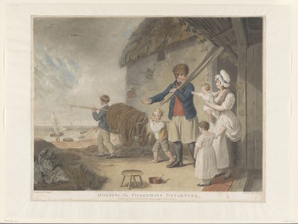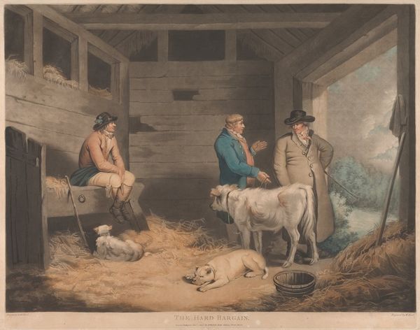 William Ward created “Men in a Tavern” as an engraving with etching and mezzotint. Ward lived in a time of great social upheaval, as traditional rural lifestyles gave way to urban industrialization. Ward's artistic skill captures a moment of rural life. The scene seems to be ordinary at first glance. However, if we pause and look closer, we see that the social hierarchy is not that simple. We can see class distinctions: the well-dressed men at the table versus the labourer entering the room, the presence of a child worker. These distinctions would have been very familiar to Ward's audience. The tavern, as a social space, plays a crucial role in creating this sense of community. How do these scenes of working class life reflect or challenge the dominant narratives of his time? While this work might seem like a simple genre scene, it asks important questions about class, labor, and the changing social landscape of the time.