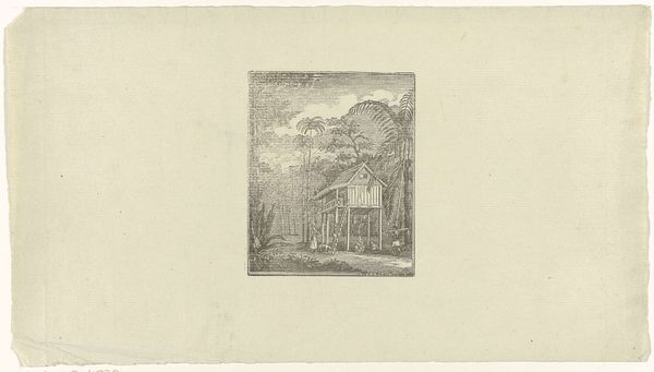 Editor: This is Edward Levy Montefiore’s "Street in Japan," and the etching is so finely detailed. The textures in the thatched roofs are really striking. What catches your eye, looking at its composition? Curator: The linear perspective, though subtly rendered, guides our gaze along the street. Note how the artist uses varying densities of hatching to create depth and volume, almost architectonic in its effect. Editor: The varying densities create such depth! Curator: Precisely. The interplay of light and shadow, achieved through meticulous cross-hatching, defines the forms and articulates the spatial relationships. It's a masterclass in monochrome expression. Editor: I see what you mean. Paying attention to the line work really unlocks so much of the piece’s appeal. Curator: Indeed, it highlights the inherent visual language of the etching medium.