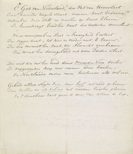 This handwritten poem by Francois Pierre Joseph de Gheselle serves as a testament to the cultural and intellectual life of its time. De Gheselle, born in the late 18th century, lived through an era marked by significant political and social upheaval. While we don't know the exact date of this poem, we can consider it as a reflection of the values and ideals of its period. Composed in Dutch, this work suggests a connection to a particular linguistic and cultural community. The choice of language itself asserts a cultural identity, resisting the dominant forces of linguistic assimilation. Consider the act of writing poetry by hand, a practice laden with intimacy and care. The deliberate act of committing words to paper speaks to a deep engagement with language and meaning. This painstaking process invites us to contemplate the relationship between text, identity, and cultural preservation.