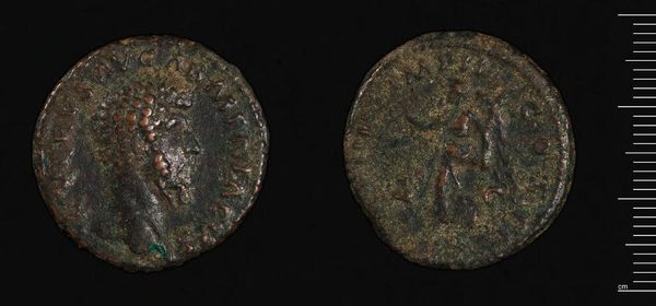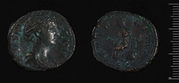 Curator: Here we have a coin, dating from the Roman Imperial period, bearing the likeness of Julia Domna, wife of Emperor Septimius Severus. Editor: It looks so worn, almost ghost-like, yet you can still make out her profile. There is a kind of solemn beauty to it, almost as if the coin itself carries the weight of history. Curator: Absolutely. Coins were a powerful propaganda tool. Her image would have been carefully crafted, and widely circulated, to project her power and influence. Editor: And who did that projected power serve? These images are never neutral. They're embedded within systems of privilege, reinforcing existing power structures. Who benefits from having their image on a coin? Curator: True, but her presence on coinage also solidified her status as a powerful and important figure, which, in a patriarchal society, is no small feat. Editor: I suppose. It's a reminder of the complexities of female power, even within oppressive structures. Curator: Indeed. This small object holds echoes of a woman's ambition and a vast empire. Editor: Makes you think about all those invisible hands laboring behind her to produce these coins, and keep the Empire running.