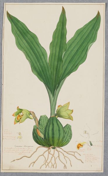Robert Jacob Gordon made this watercolor drawing of the Cyranthus obliquus, or Knysna lily, sometime before his death in 1795. Gordon was a Dutch military officer and explorer of Scottish descent, working for the Dutch East India Company. This botanical study reflects a broader cultural interest in natural history during the Enlightenment. Expeditions to distant lands frequently included naturalists and artists who cataloged new species for scientific study, as well as for the visual consumption of European audiences. The Knysna lily, native to South Africa, would have been exotic and unfamiliar to European viewers. Gordon's rendering of the lily isn't just an objective record; it reflects the complex social and political context of colonialism, where the pursuit of knowledge was intertwined with economic and territorial expansion. To fully understand this image, we would delve into the archives of the Dutch East India Company, exploring how scientific illustration became a tool of empire.
