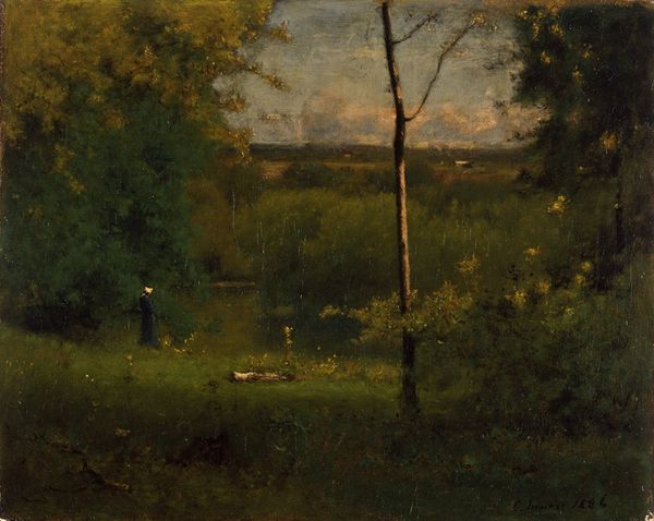 George Inness painted "Near the Village, October" using oil paints. The application is quite loose, with strokes of color that blend softly together. Inness was deeply engaged with the Barbizon school of painting, and sought to portray the landscape in a way that evoked feeling and mood, rather than specific detail. You can see how the material qualities of oil paint – its viscosity, its capacity for blending, its luminosity – serve this purpose. When looking at the history of landscape painting, it is crucial to remember the social dimensions of the scene. Nature is never just nature, in other words. The very idea of escaping to a rural landscape, which was becoming popular in the late 19th century, was intimately tied to the growth of cities, and the emergence of industrial capitalism. With its painterly surface and careful composition, "Near the Village, October" is both a celebration of the American landscape, and an expression of complex feelings about the transformations then underway.