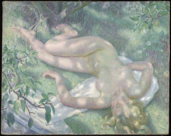 Editor: So, here we have an untitled painting, potentially oil paint, by Mohammad Hadi Tajvidi. It depicts a nude woman with a swan in a landscape setting. I’m immediately struck by how… vulnerable and exposed she appears, but almost serene? What do you see in this piece? Curator: I see a powerful intersection of mythology, gender, and artistic tradition, fraught with potential misinterpretations. The allusion to the myth of Leda and the Swan immediately complicates our reading. Zeus’s rape of Leda, disguised as a swan, carries significant weight in how we understand female agency and the pervasive nature of sexual violence, even within a seemingly beautiful and pastoral scene. What does the artist aim to convey by portraying the female figure in such a composition? Editor: Well, I suppose it depends on his intent, which we can't know for sure. It *could* be a romanticized view, typical of the style? Curator: Indeed, Romanticism often idealizes the past and mythologizes experience. Yet, the very act of visualizing such narratives risks perpetuating problematic power dynamics if it fails to acknowledge, or worse, ignores the violence inherent in these stories. We must engage with it critically, considering both the artist’s potential intentions, the historical context in which it was created, and, importantly, the gaze through which we, as viewers, approach it. Who does this artwork serve? Editor: So it’s less about aesthetic enjoyment and more about confronting these underlying issues? Curator: Beauty and critical engagement are not mutually exclusive. It's about being aware of the complex layers beneath the surface. By analyzing how such narratives are visually constructed, and who benefits from their repeated telling, we can challenge dominant interpretations and potentially reclaim the stories for a more equitable understanding. Editor: That's a lot to think about! I didn’t initially see all of that, but it definitely adds depth to the work and gives a new framework to view the art. Curator: Exactly, art history should instigate conversation. Approaching the piece through social and historical context makes it all the more powerful, right?