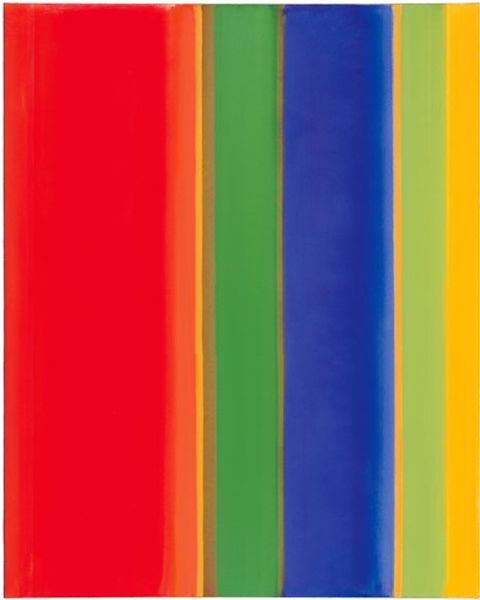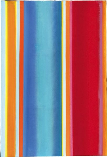 Morris Louis made "Number 2-07" with acrylic on canvas. Notice how parallel bands of color cascade down a pristine white field, creating a visual experience that’s both serene and captivating. The composition invites us to consider the painting's materiality and its break from traditional methods. Louis stained diluted acrylic directly into the canvas, foregoing brushes, allowing the colors to merge, bleed and interact organically. This method emphasizes the flatness of the canvas, challenging conventional notions of depth and form. The interaction of color and space functions as a sign in itself, inviting contemplation on the very essence of painting and visual perception. The artwork destabilizes conventional ideas and invites the viewer to engage with it on a more profound level. The artwork is a site of ongoing dialogue and renewal, and not as a static entity, but as a dynamic field of possibilities.