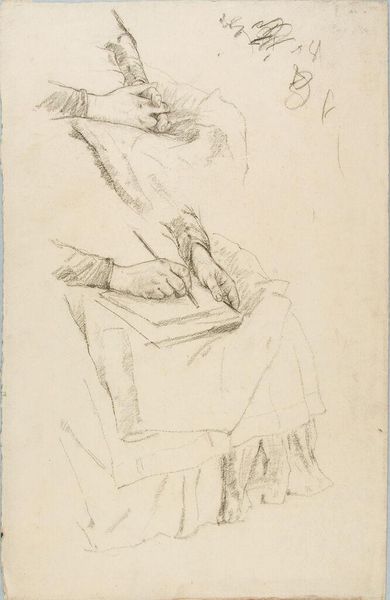 Editor: This is William Valentine Schevill's "Sketch of a Seated Woman Reading a Book," located here at the Harvard Art Museums. It's a delicate pencil sketch, almost fleeting in its lightness. What can you tell me about it? Curator: This sketch offers a glimpse into the private sphere, a space increasingly celebrated and scrutinized during the late 19th century. How does the act of reading, often associated with leisure and self-improvement, function within evolving social expectations of women? Editor: That's interesting. It seems that even a simple sketch can reflect broader social narratives. I'll have to keep that in mind. Curator: Exactly! Consider the institutions, like libraries and reading groups, that also shaped women's access to knowledge and public life.
